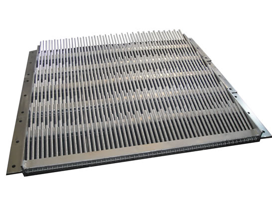 棒条筛板是由一组平行排列的、具有特定断面形状的钢棒组成。棒条平行排列,棒条之间的间隔即为筛孔尺寸。棒条筛面一般用于固定筛或重型振动筛,适于筛分粒度大于50mm的粗粒ji物料。