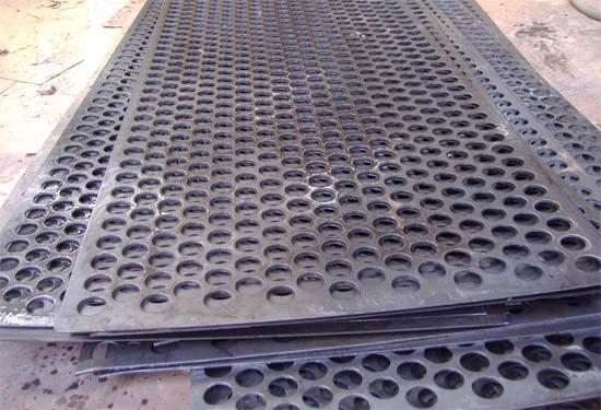 冲孔筛板一般是在厚5-12mm的钢板上冲制出圆形、方形或长方形筛孔而成。与圆形或方形筛孔的筛板相比,长方形筛孔的筛面通常有效面积较大、质量轻、生产率较gao,适于处理水分含量较gao的物料,但筛分的分离精度较差。